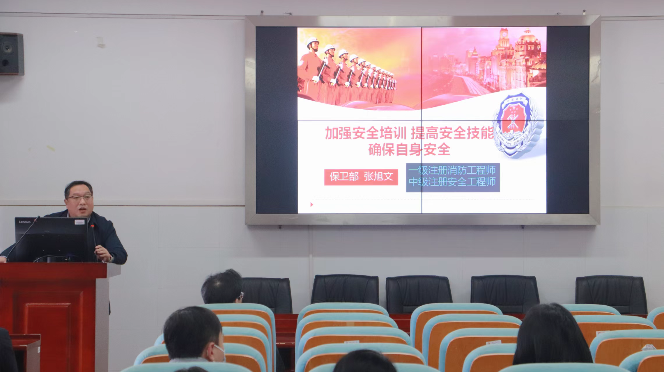 此次讲座以“人人讲安全,个个会应急”为核心主题。张旭文结合冬季校园防火形势严峻、用电需求攀升的季节特点,系统阐述了校园消防安全工作的重大意义。他通过列举社会场所及校园环境中的多起真实火灾案例,并辅以详实的数据,深入剖析了火灾事故的成因与深刻教训,清晰展现了违规操作、应急处置失当可能引发的人员伤亡、财产损失等严重后果,为全体教职工敲响了消防安全的警钟。
